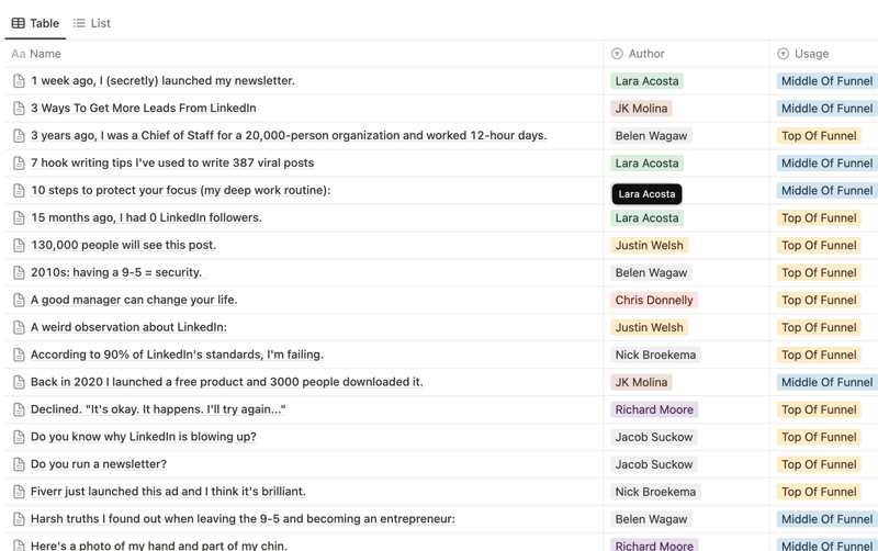 I spent a hours creating this system - finding content written by some of the best writers on Linkedin. These are the highest engaging posts (most comments).
